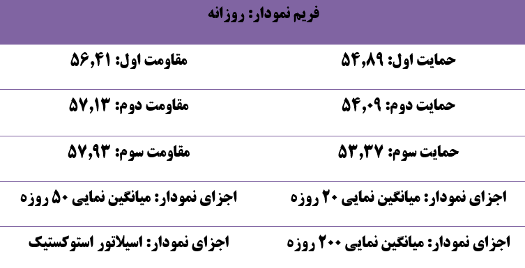 قیمت وارد اشباع خرید استوکستیک شده و روند صعودی قیمت به خوبی مشاهده می شود. در چنین شرایطی بهترین انتخاب این است که منتظر شکست مقاومت ها باشیم و برای خرید اقدام کنیم. قیمت در نزدیکی مقاومت اول قرار گرفته است و اگر بتواند این مقاومت را بشکند تارگت بعدی قیمت مقاومت دوم 57.13 خواهد بود. اما فرض کنیم قیمت در شکست مقاومت اول ناکام مانده و وارد اصلاح شود. به دلیل روند قوی قیمت بهتر است ابتدا تا حمایت اول یا نمایی 20 صبر کنیم و درصورت برگشت قیمت برای خرید تا مقاومت اول اقدام کنیم.