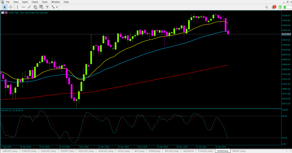 معاملات چهارشنبه با انتشار گزارشات عملکرد ناامیدکننده شرکت‌ها و پیش‌بینی افت بازار سهام، با سقوط سنگینی روبرو شدند. رشد اخیر سهام آمریکا به قدری سریع و زیاد بوده که قیمت‌های سهام را غیر واقعی ساخته است و سرمایه‌گذاران با فروش سهام برا تثبیت سود خود باعث سقوط بازار شده‌اند و داوجونز نزدیک به 3 درصد سقوط داشته و به زیر دوتا از نمایی های قوی خود یعنی 20 و 50 رفته که اولین سیگنال خروج بازار از روند صعودی می باشد و تشکیل کف های پایین تر، بازار را وارد سیکل رنج منفی خواهد کرد.