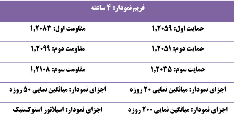 قیمت در روند نزولی قرار گرفته بنابراین بهتر است بیشتر روی نقاط ورود برای فروش تمرکز کنیم. قیمت علی رغم قرار گرفتن در اشباع فروش، اما به دلیل فشار فرونشدگان میتواند همچنان به ریزش خود ادامه دهد. اگر قیمت بتواند 1.2059 را بشکند تارگت بعدی برای خروج از ترید برابر 1.2051 می باشد. اما ممکن است قیمت به دلیل وجود در اشباع فروش استوکستیک، یک اصلاح قیمتی را تا حمایت اول انجام دهد. بنابراین اگر قیمت به حمایت اول خود 1.2083 بازگشت و سپس یک کندل قوی نزولی زد نقطه مناسبی برای فروش تا حمایت اول است.