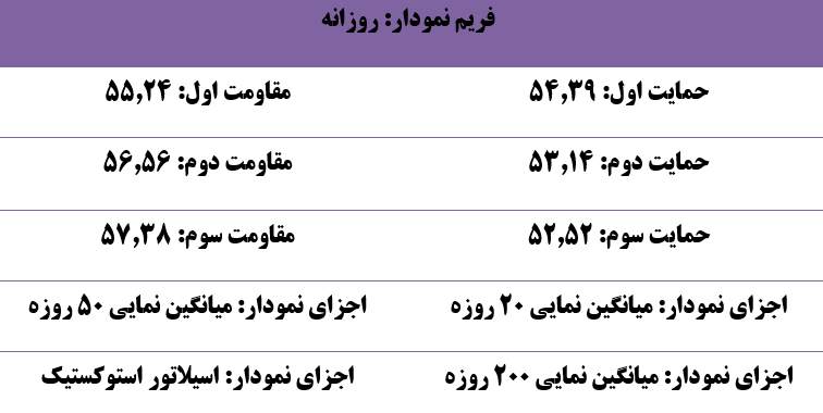 قیمت روی اولین حمایت خود قرار داشته و روی مقاومت اول درگیر شده است. همچنین به تازگی قیمت ار اشباع فروش استوکستیک رد شده است. اگر قیمت بتواند امروز روی مقاومت اول خود تثبیت شود انتظار رشد قیمت تا مقاومت دوم 56.56 را خواهیم داشت. اما اگر قیمت به زیر نمایی 20 و حمایت اول کشیده شود دراین صورت قیمت وارد حالت رنج شده و باید انتظار افت قیمت تا حمایت بعدی 53.14 را داشته باشیم.