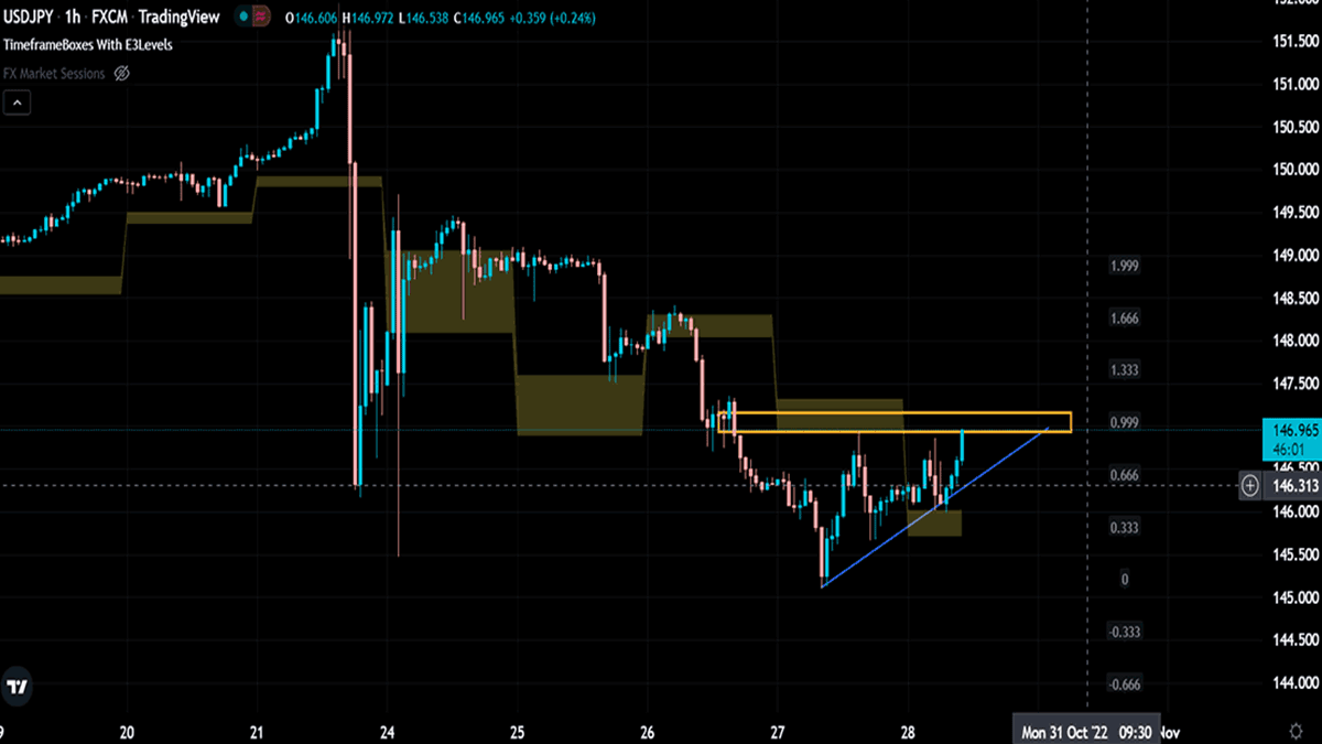 قیمت در محدوده 146 حمایت شده و در نزدیکی سطح 147 قرار دارد. درصورتیکه قیمت بتواند روی سطح 147 تثبیت شود انتظار رشد قیمت تا سطوح 147.40 و 148.00 را خواهیم داشت.