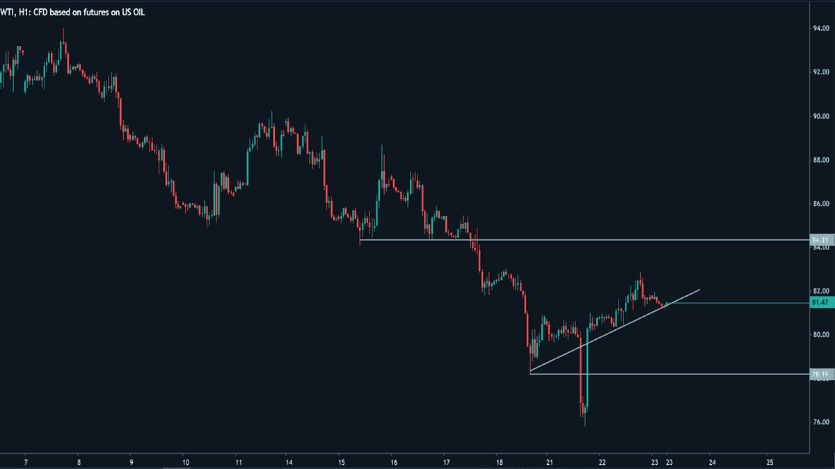 در ابتدای هفته به شکست تریگرلاین و ریزش قیمت اشاره کردیم. قیمت پس از شکست تریگرلاین تا تارگت اعلامی حرکت کرد و ریزش 300 واحدی را داشت. در حال حاضر، قیمت روی سطح حمایت داینامیک ما قرار دارد. اگر قیمت این سطح را بشکند انتظار ریزش قیمت را تا سطح 78.00 داریم. اما اگر روی سطح حمایتی تثبیت شده و محدوده 82 را رد کند انتظار حرکت قیمت تا سطح 83 و 84.50 را داریم.