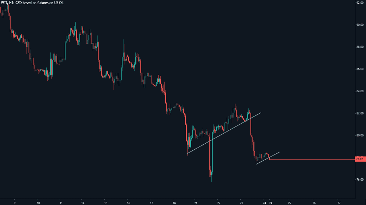 Last day we mentioned the breakout of Triggerline. The price was able to break the trigger line level and hit our target and gain 350 pips. The price is in a selling pressure and if our current trigger line is broken again, we expect the price to drop to the level of 76.50 and 72.